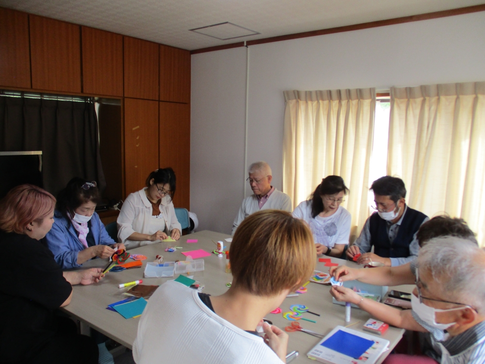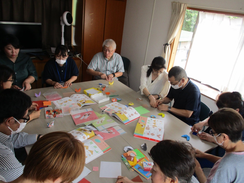 シニア大学のみなさんから毎月おりがみを教えて頂いており、和気あいあいと楽しいひと時を過ごしています。