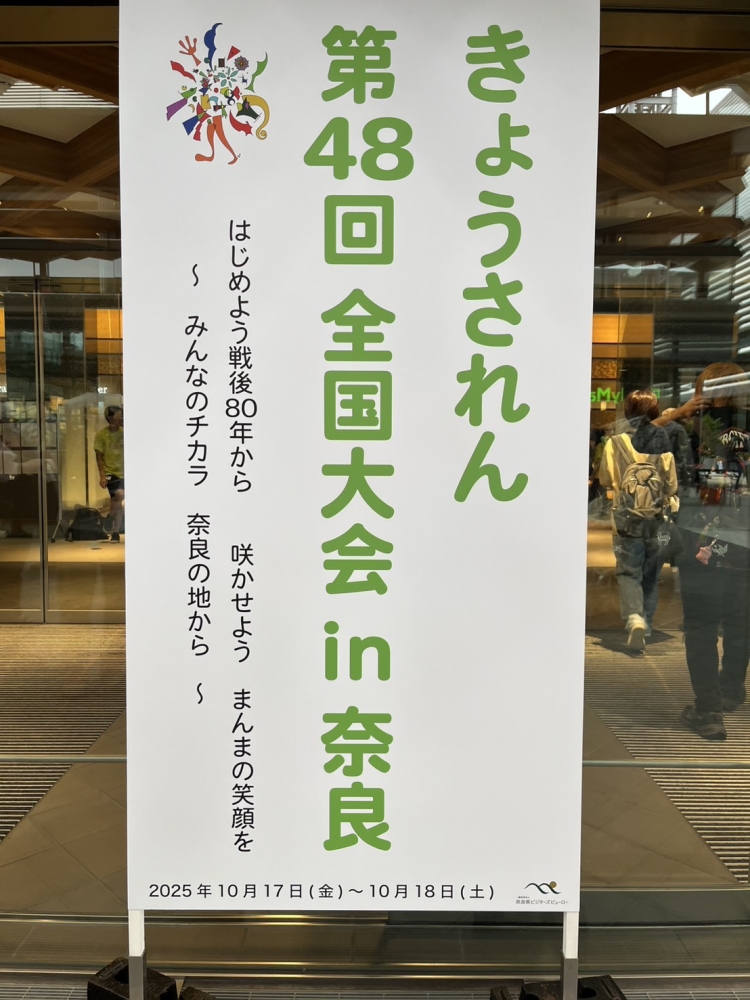はじめよう戦後80年から咲かせようまんまの笑顔を〜みんなのチカラ奈良の地から〜のテーマのもと、1日目はシンポジウムやコンサートに参加しました。