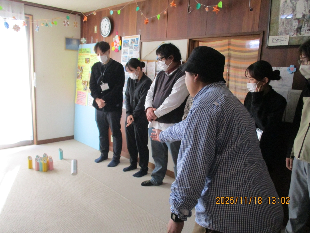今回も、ボランティアの上野さんにルールを教えていただきながら、みんなで楽しくダンボルックを体験しました。また、長野保健医療大学の実習生さんも参加し、一緒にプレイすることで活気に満ちた時間となりました。