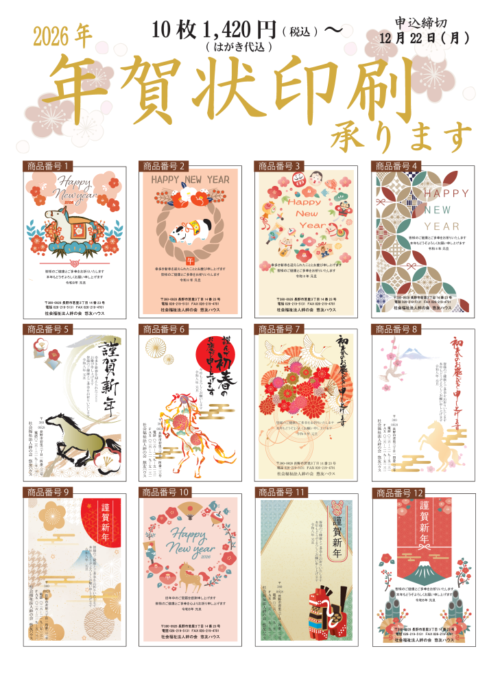今年も悠友ハウスにて年賀状のご注文を承ります。